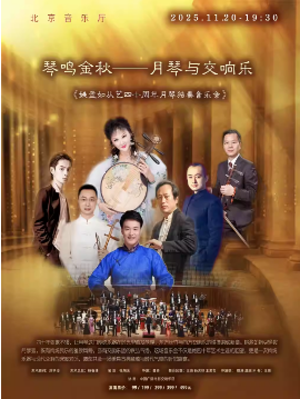 琴鸣金秋——月琴遇见交响乐 《姚盈如从艺四十周年月琴独奏音乐会》 演出地点:北京音乐厅 演出时间:2025年11月20日 晚19:30